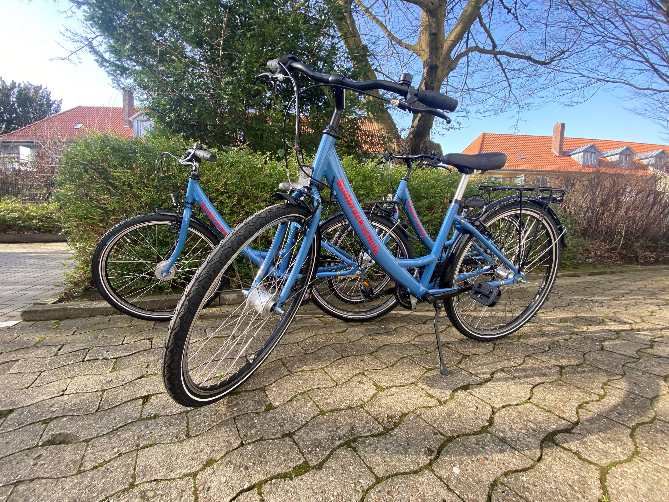 Der Fahrrad-„Fuhrpark“ der Sudbrackschule wurde ergänzt und wir freuen uns sehr über die drei Neuankömmlinge, die hier in der Sonne glänzen. Dank des Förderprogramms ‚KlimaSchule‘ können zukünftig viele Schülerinnen und Schüler auf diesen tollen Fahrrädern am Fahrradtraining teilnehmen.