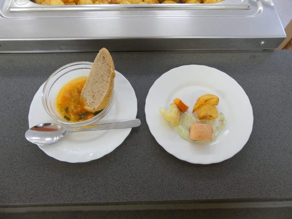 Der Speiseplan ist abwechslungsreich gestaltet. Jedes Gericht erscheint in der Regel nur einmal pro Monat auf dem Plan – mit Ausnahme der beliebten Pizza, die zweimal angeboten wird. Neben vegetarischen Gerichten stehen zweimal pro Woche auch Fisch- oder Geflügel-, bzw. Rindfleischgerichte zur Auswahl.