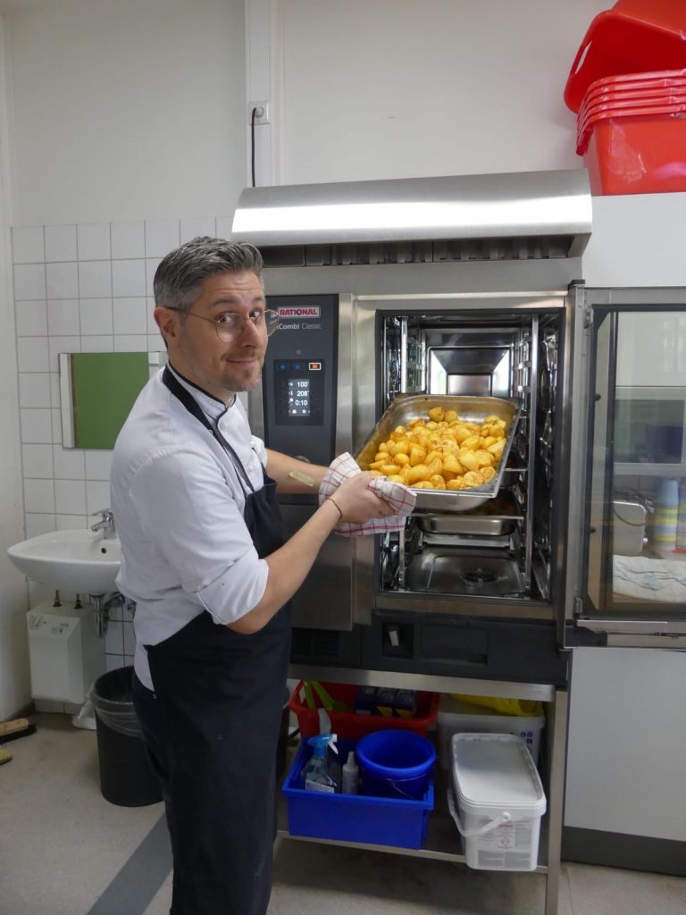 Das Mittagessen an der Sudbrackschule wird seit 2020 täglich frisch in der FrischeKüche auf dem Halhof in Bielefeld zubereitet. Dort entstehen jeden Tag mehrere hundert Mahlzeiten für unsere Schülerinnen und Schüler – mit viel handwerklichem Können und hochwertigen Zutaten.
