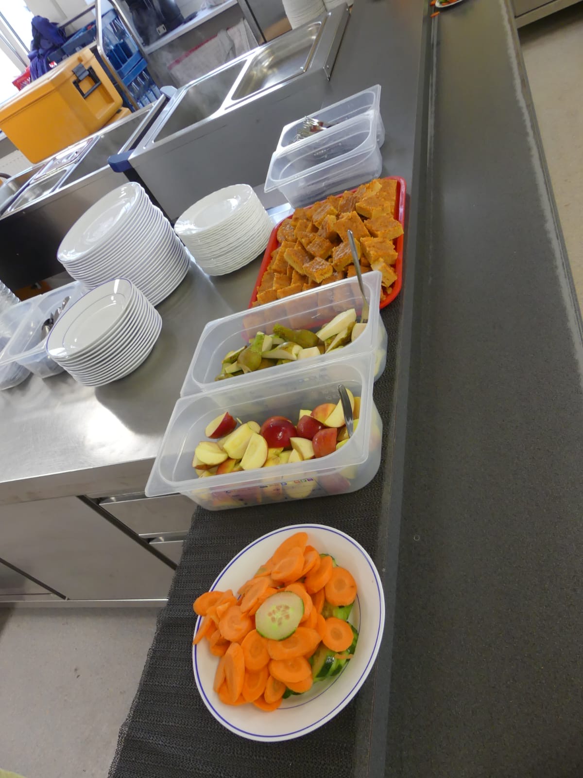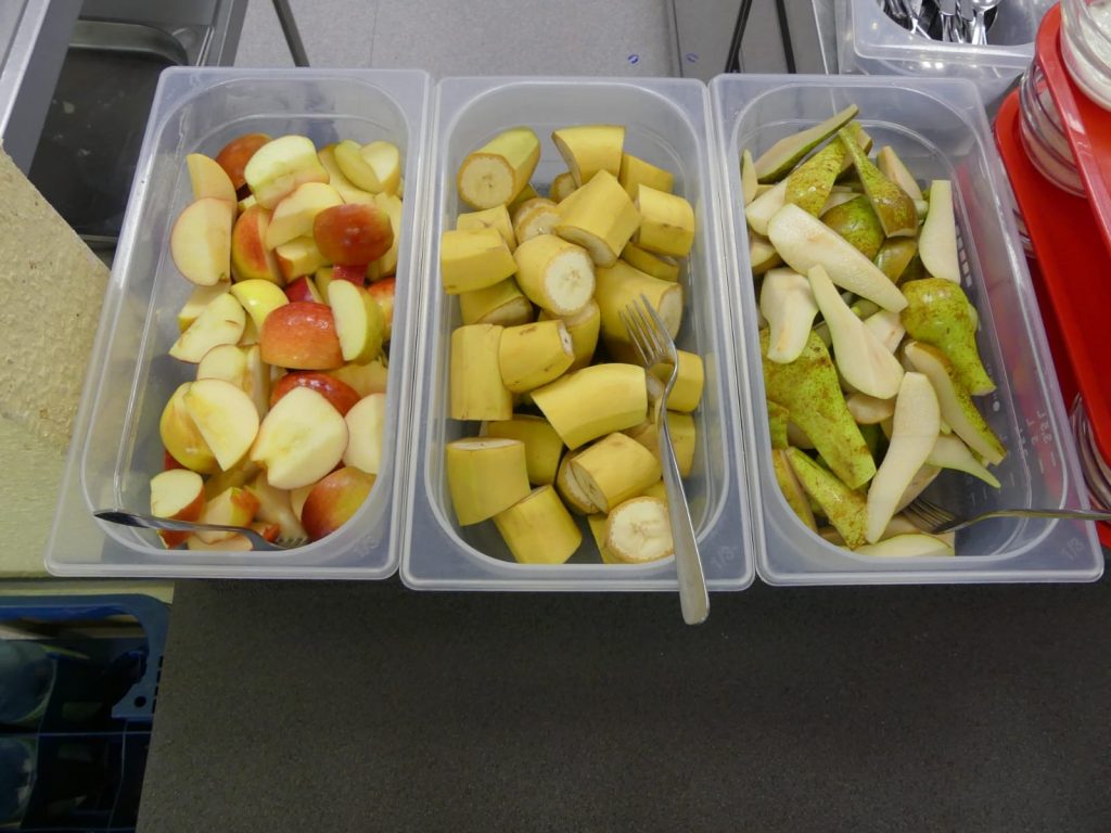 Zum Mittagessen gehört selbstverständlich auch ein Dessert. Die Auswahl reicht von Joghurt mit Früchten über frisches Obst bis hin zu einem Eis am Freitag – ein kleiner süßer Start ins Wochenende.